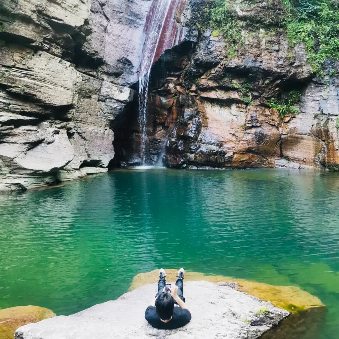 龙潭江峡谷,位于兴安华江,也同样发源于猫儿山,是漓江主要源头溪流之一。这里被称为“桂林九寨沟”,潭水碧绿幽深,透明似果冻,被誉为“果冻水”。是非常值得一去的景点,因此此行中特别安排了打卡游览。