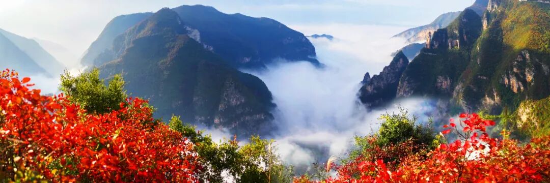 仲秋时五彩缤纷,晚秋层林尽染,初冬时一片火红,走进巫山,就如同走进了一幅波澜壮阔的红叶画卷!