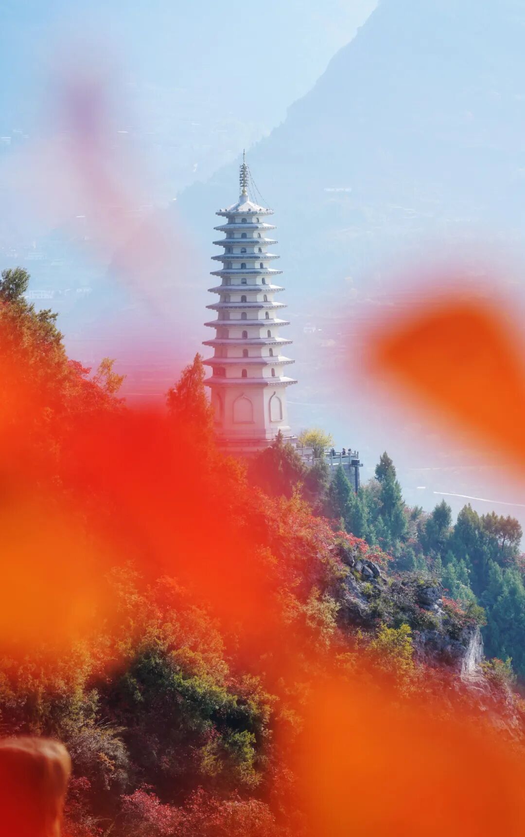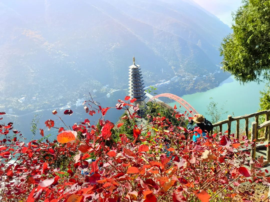 登上文峰山顶,可俯瞰高峡平湖之雄伟,大江将巫山山脉硬生生地辟开,白色的镇水塔与绿色江水、山、红叶四位一体,呈现出高峡平湖与满山红叶交相辉映的壮丽景色,同时这也是观看巫山县城全景的绝佳地方。