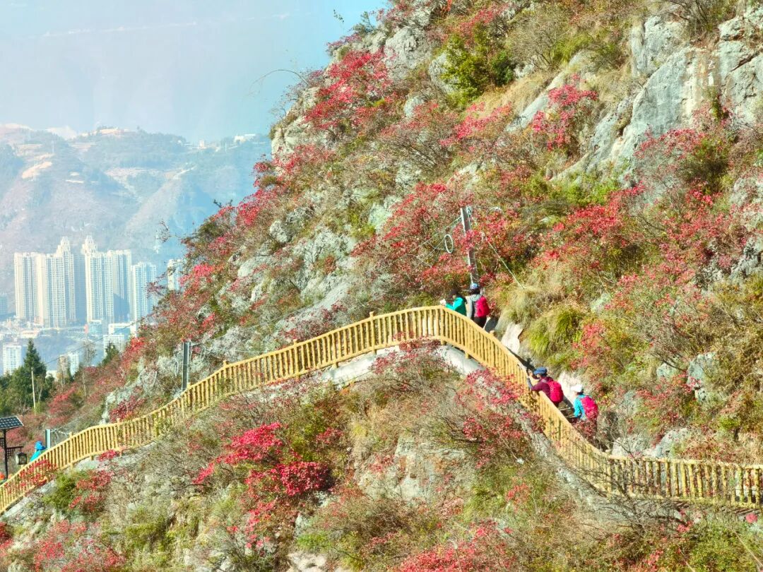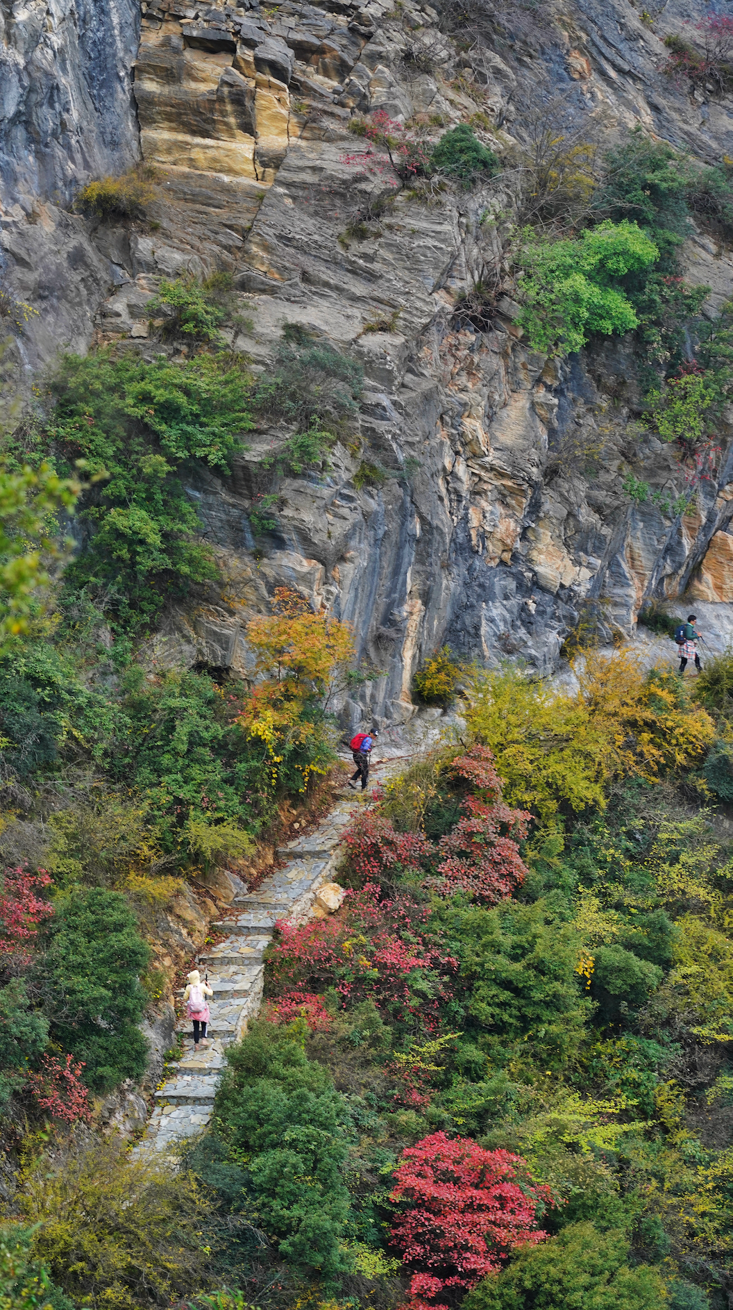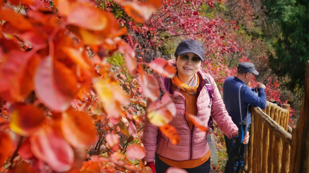 我们乘车前往三峡之巅,于上帝视角俯瞰百万亩红叶,后沿着诗意栈道一路下降,在漫山红叶、瑰丽山水间行走,这里可谓“一步一景,一步一天地,俯仰皆画境”。