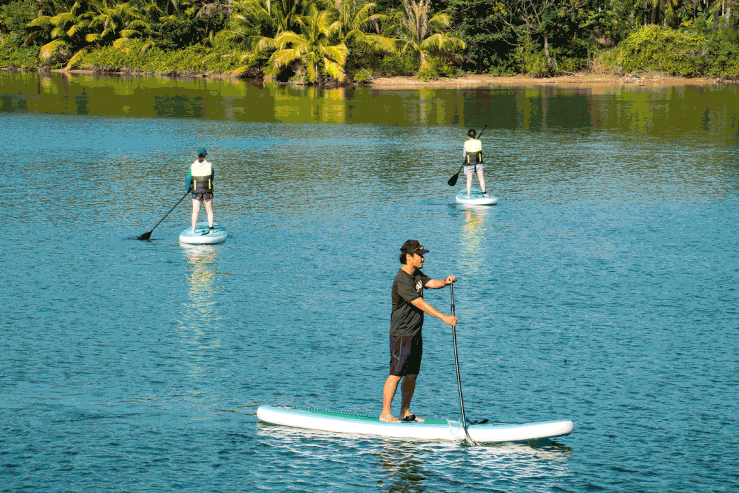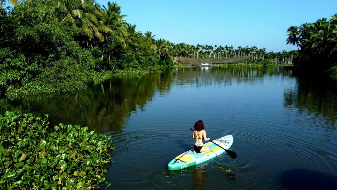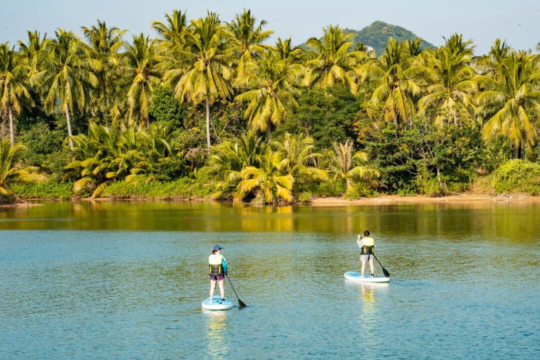 早餐后(约8:30)我们前往琼海桨板运动基地,了解桨板理论后开始热带河道桨板探秘。