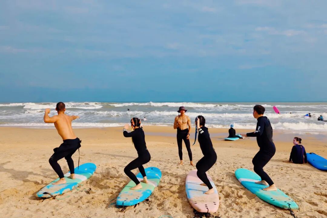 温馨提示:冲浪属于极限运动,若课程外时段想要自行练习,必须聘请教练且向领队报备。