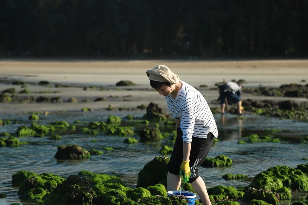 赶海本是海边渔民生产劳作方式,在涨潮或退潮时,居住在海边的人们纷纷赶来,手拿简易工具,捕捉时令新鲜的海鲜美食。从小在海边长大的人,深谙潮水涨退的规律,对大海十分敏锐,不用看天气预报,也知道什么时间什么样的海鲜最肥美,它们最喜欢在什么样的环境之下藏身,简直令人称赞!