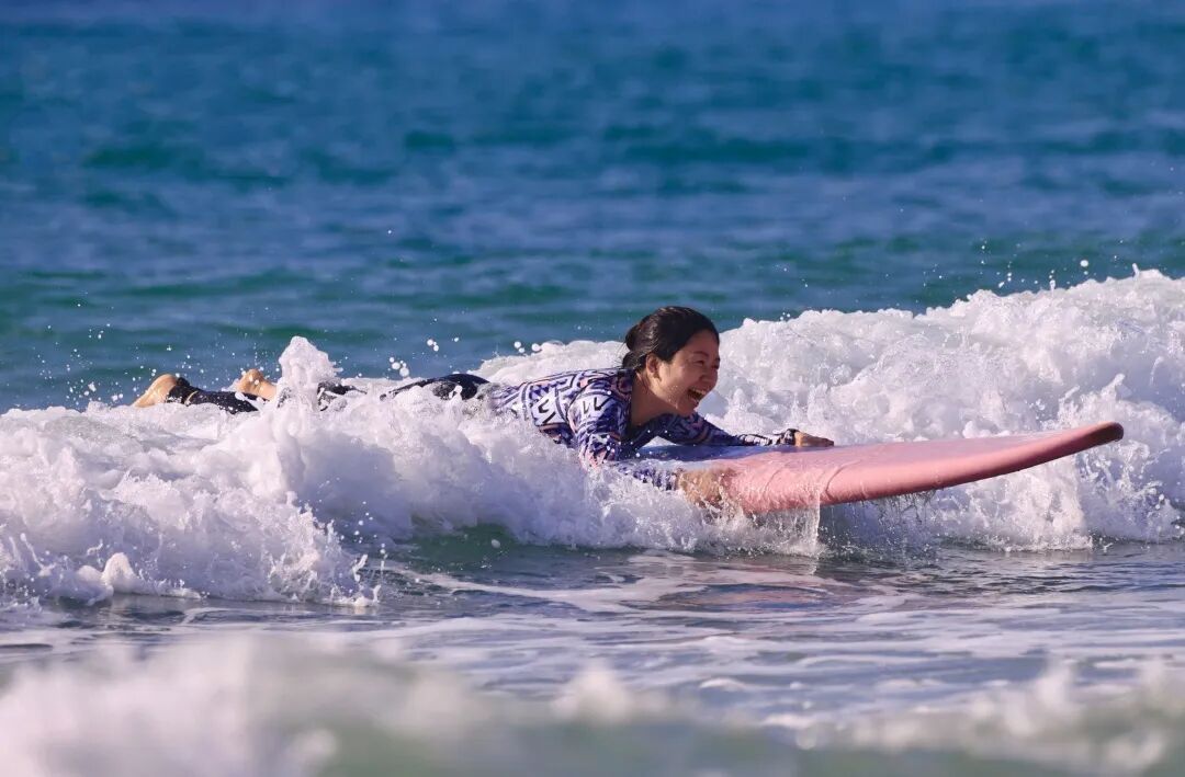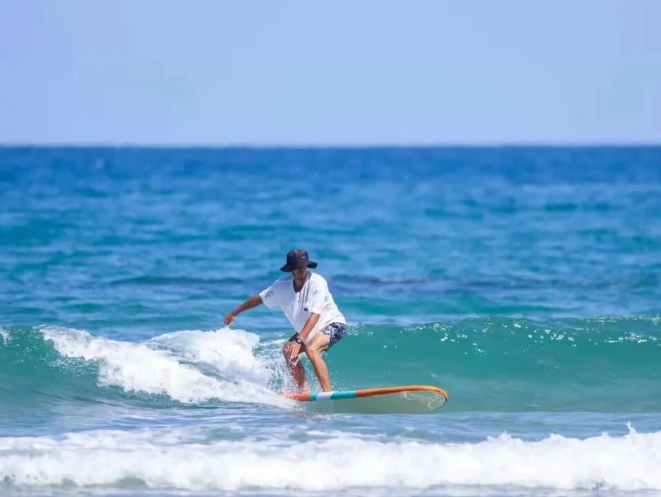 国内的冲浪胜地,当属海南,而海南的冲浪胜地,当属日月湾。日月湾是世界上少有的拥有高质量定点浪型和沙滩浪型的海域之一,常年平均浪高 1.5-2 米,被誉为世界十大冲浪胜地之一,备受国内外“浪人”的喜爱。