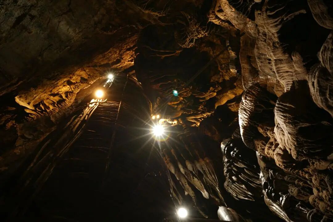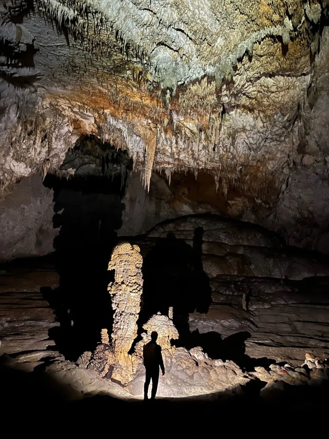 走进天坑洞穴的地底世界,就如同走入了积淀了百万甚至亿万年的时光隧道,岩石被挤压、被侵蚀成光怪陆离的形态,那些岩壁的纹理和褶皱在无尽的黑暗岁月中静谧生长,留下时间停驻的痕迹。