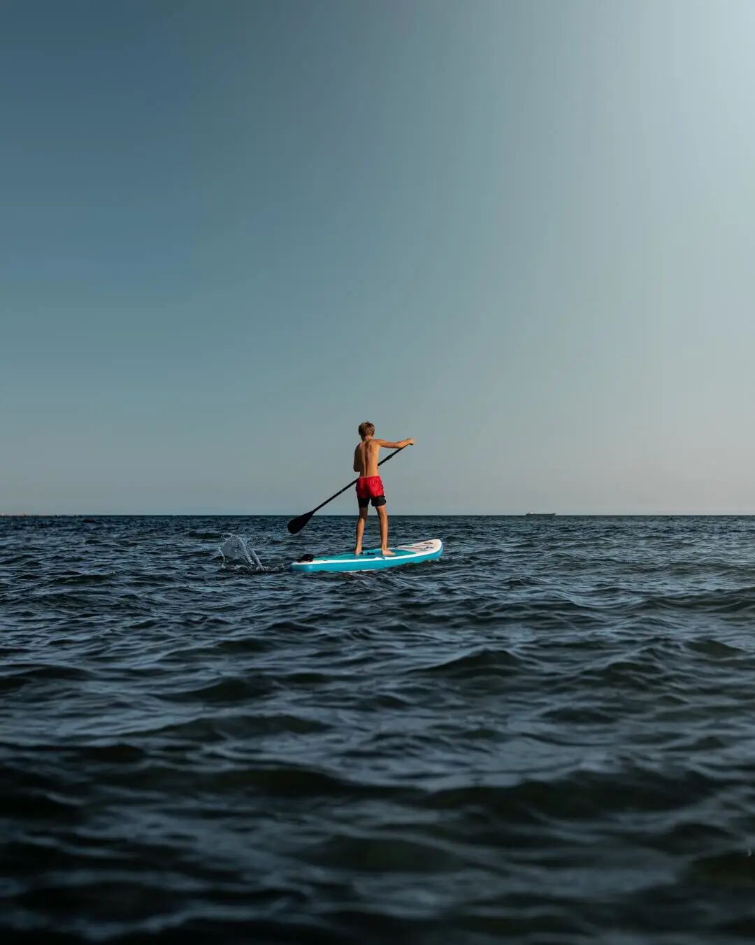 桨板的全称是站立式桨板运动(SUP),从冲浪中变形而来,却和冲浪有所不同,桨板是以桨推动水波获得动力,更像是一种独木舟与冲浪相结合的水上运动。大概是拥有着老少皆宜、难度较低的户外属性,在 2013 年,美国的一项调查中显示,这是当年美国首次参与人数最多、最受欢迎的户外运动。