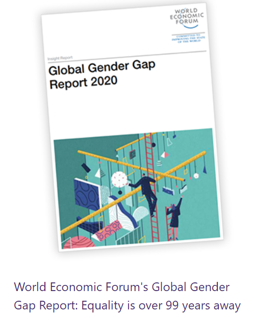 根据全球经济论坛2020的收入差距报告显示:按目前的进步速度,要实现男女平等,还需要99.5年!!