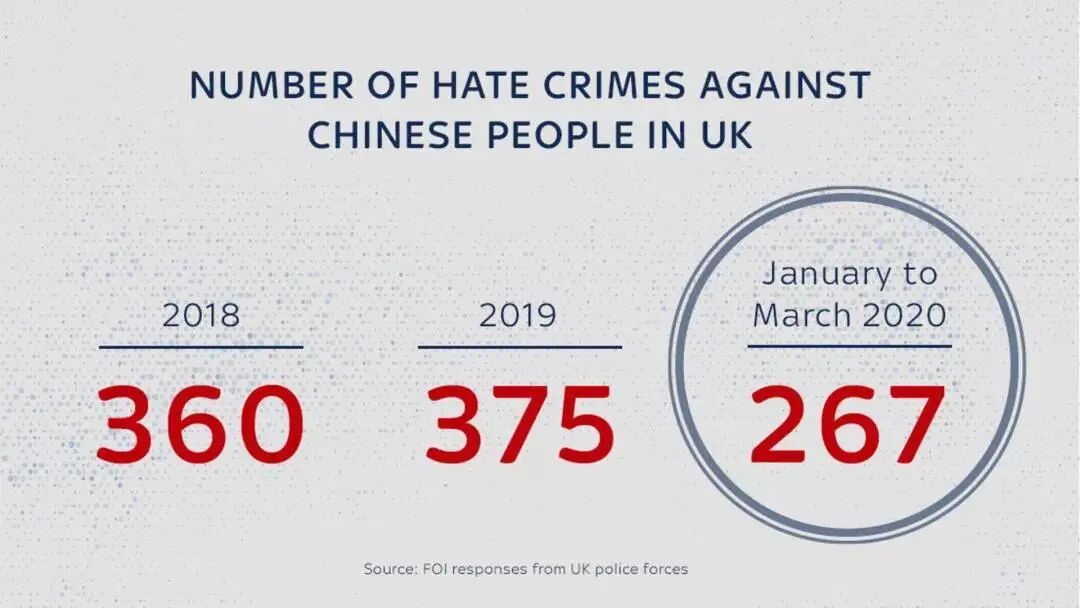 可就算在英国,针对华人的种族歧视案件,也因为新冠疫情而暴增,仅2020第一季度就达到267起,是之前两年同一时段的三倍!