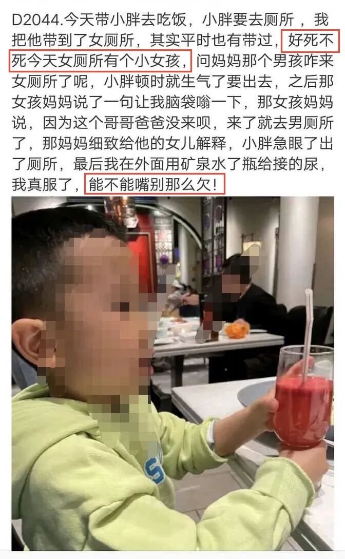 还有些人语气特别尖锐,直接质问:“为什么非要妈妈带去厕所?孩子爸爸难道死了吗?”