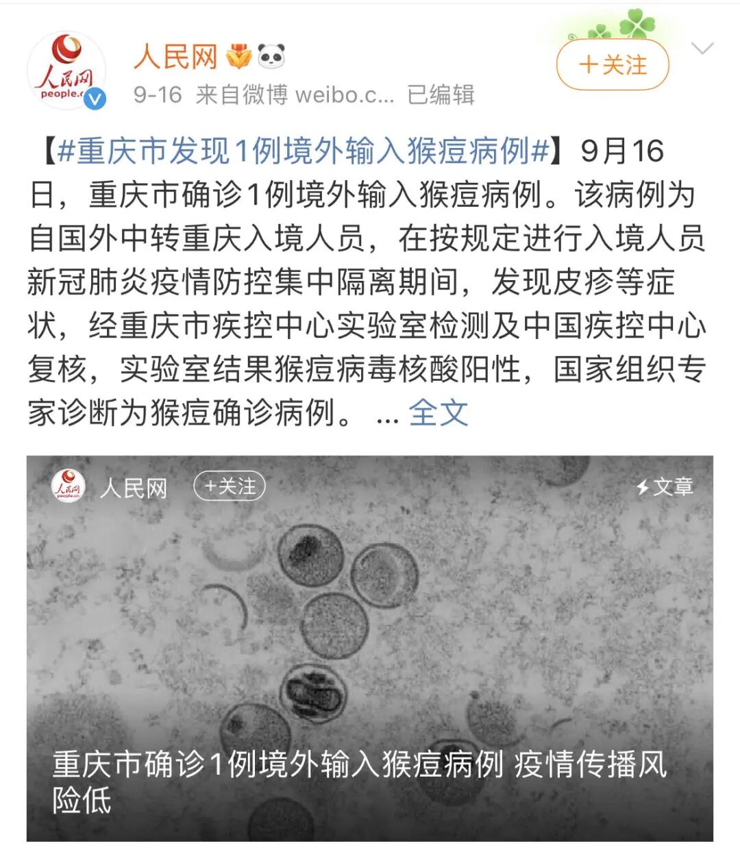 就在两天前,国内报告了第一例猴痘病例,马上有读者希望我能讲讲这个事情。