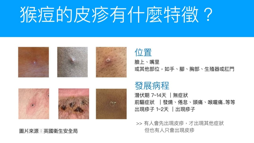 此外,猴痘的症状:发烧、严重头痛、淋巴结肿大、背痛、肌肉痛和无力,也让感染者比较容易被诊断。