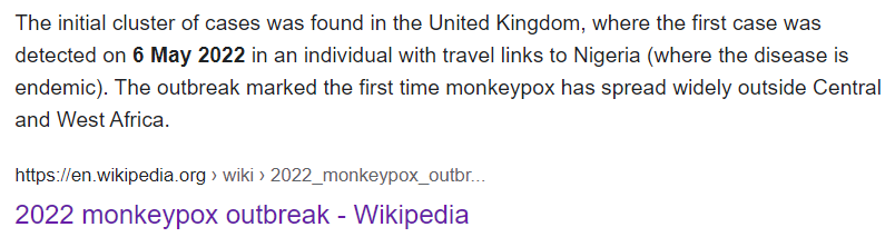 短时间内,全球多个国家也报告了猴痘病例,并且很多确诊病例并未到过传染多发地区,表明出现了社区传播。