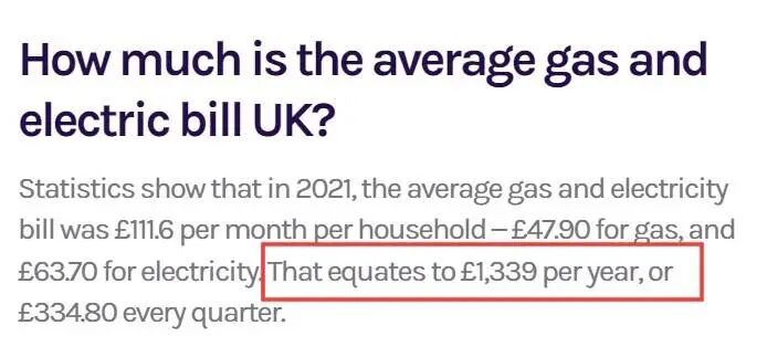 英国家庭2021年的平均电气账单是1339英镑每年(约合人民币10712元)。
