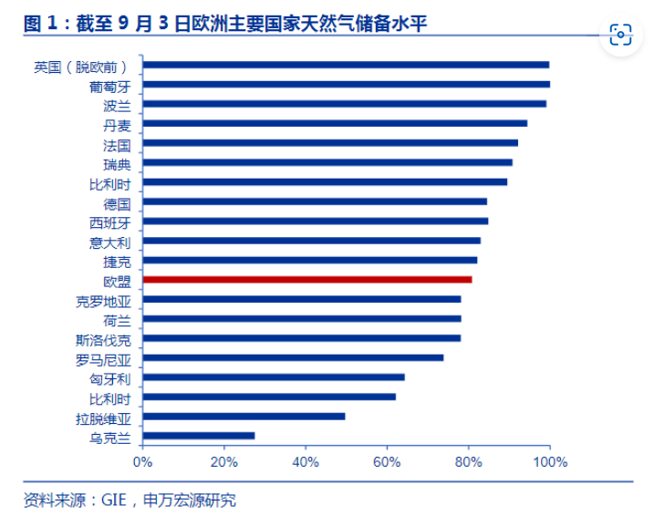 目前欧盟各国的天然气储备量都有85%以上,正常过完这个冬季问题不大。