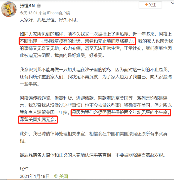 几天前,郑爽前男友(又说是前夫,在美国隐婚)张恒微博爆料,他之前被污蔑诈骗、携款潜逃、滞留美国不归,实则是为了保护两个无辜的孩子。
