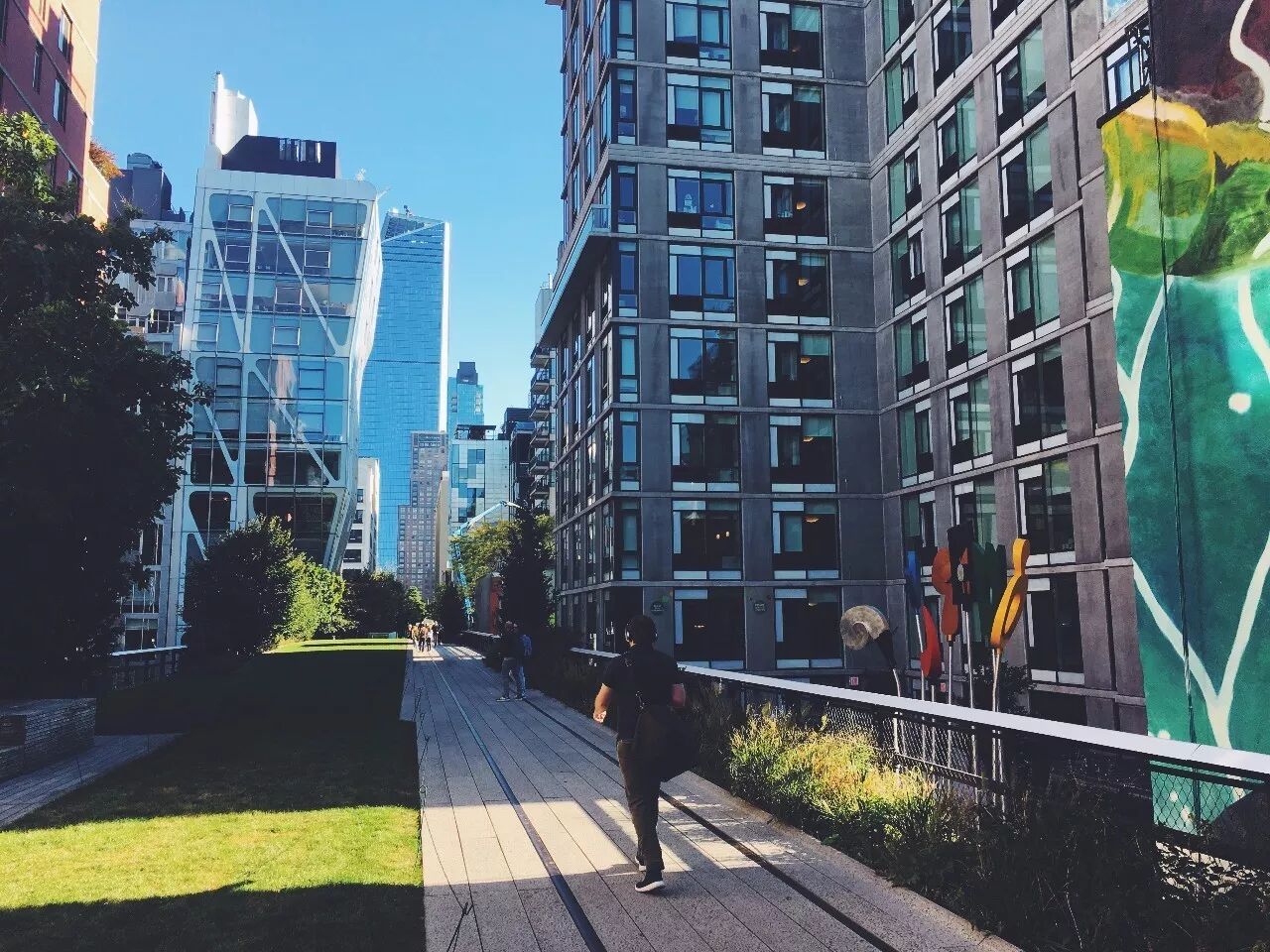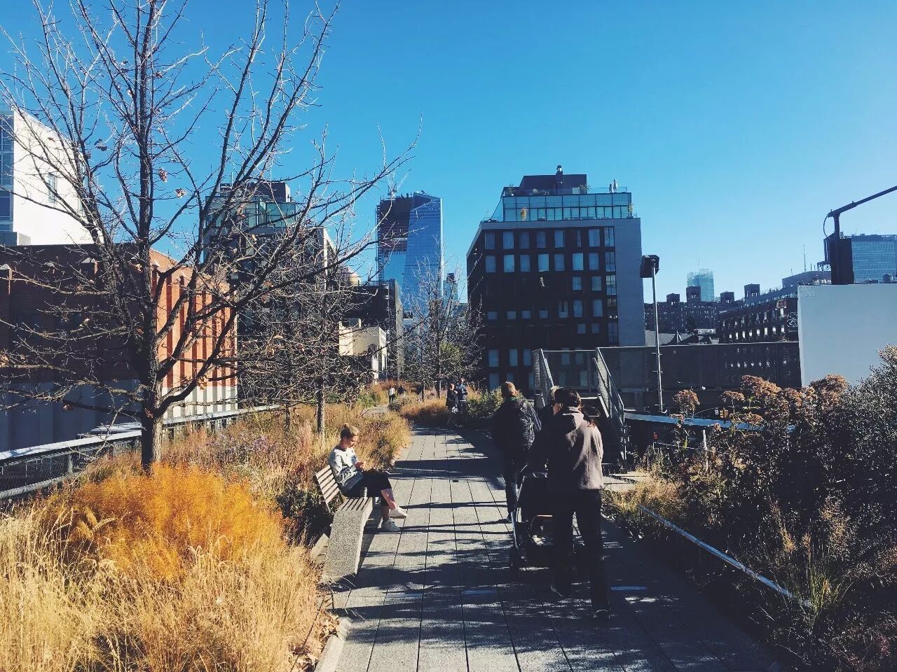 这是一个网红铁路公园,原本废弃的高架铁路在设计师的脑洞下,变成了纽约颇受欢迎的空中花园,也让沿线准备搬走的人恢复了居住信心,成为国际设计和旧物重建的典范。highline不是特别长,暴走夫妇利用早上锻炼的时间,从北向南散步,终点就是切尔西市场直接开吃。路上看到很多跑步者、溜娃者(美帝的爹妈,这么早溜娃真的有点冷啊)。