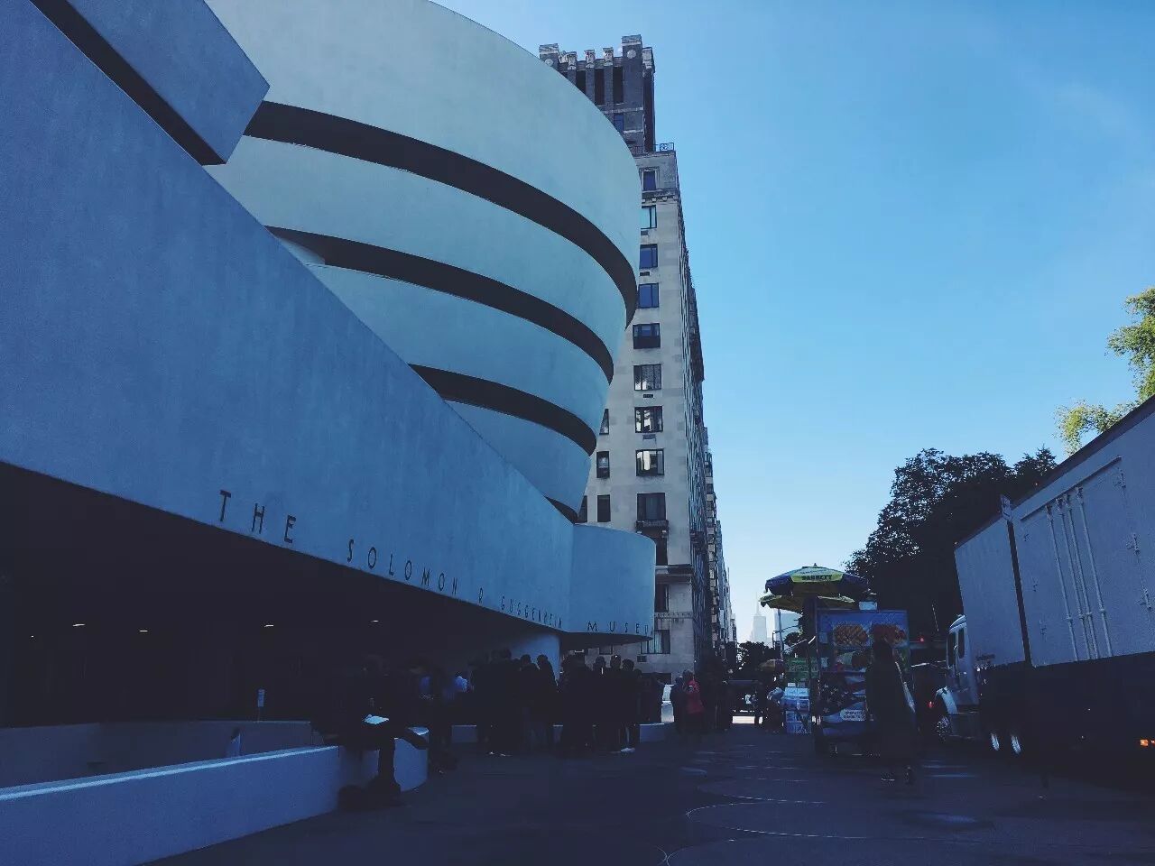 是私人收藏博物馆,外部非常朴实无华,内部却充满设计感,可以拍出很多大片,陈列大厅是一个倒立的螺旋形空间,顶部是一个花瓣形的玻璃顶,买完票参观时观众先乘电梯到最上层,然后顺坡而下,边走边欣赏不知不觉看完展品。前阵子,古根海姆还因为要展出中国艺术家的作品受到了动物保护者协会的抗议。
