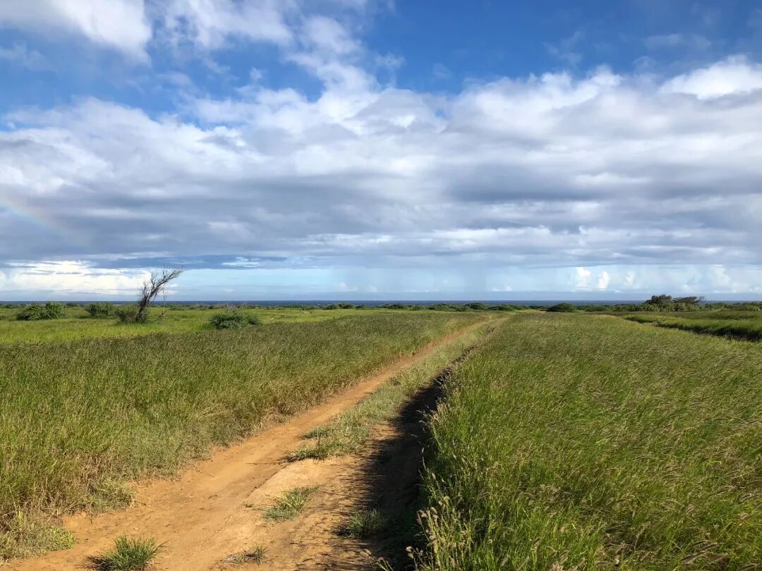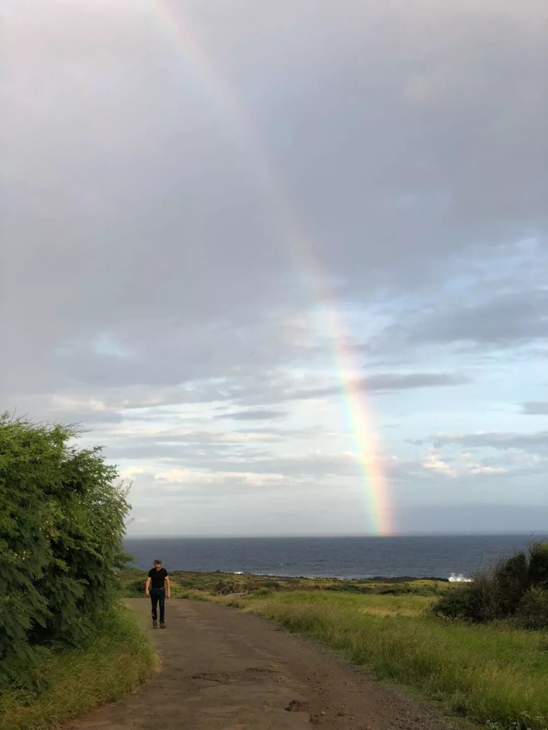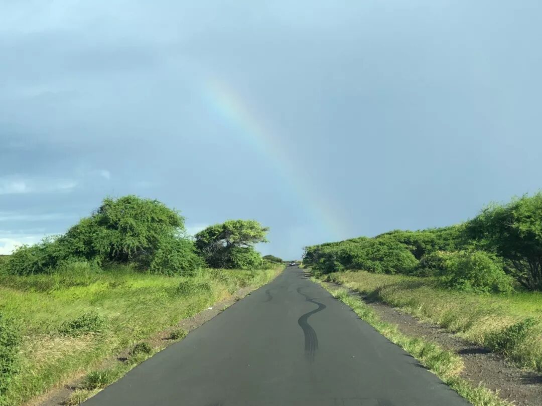 很多时候我们告诉自己放下游客的企图心,不再心怀执念的景点打卡,旅行会变得美好很多。事实证明的确如此,在前往绿沙滩的路上,我们在各种荒原、草原上感叹美景,不经意回头,就看到了此行的第一道彩虹。ps:夏威夷号称彩虹州,几乎天天看到各种彩虹。
