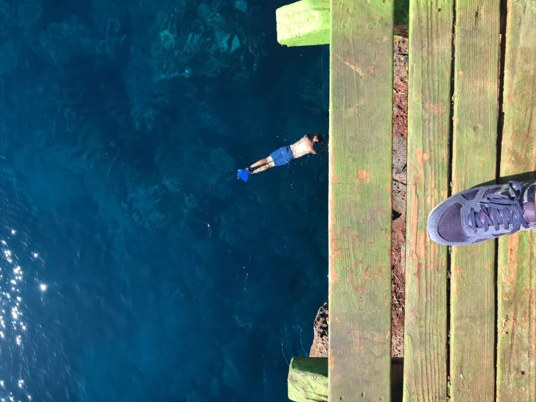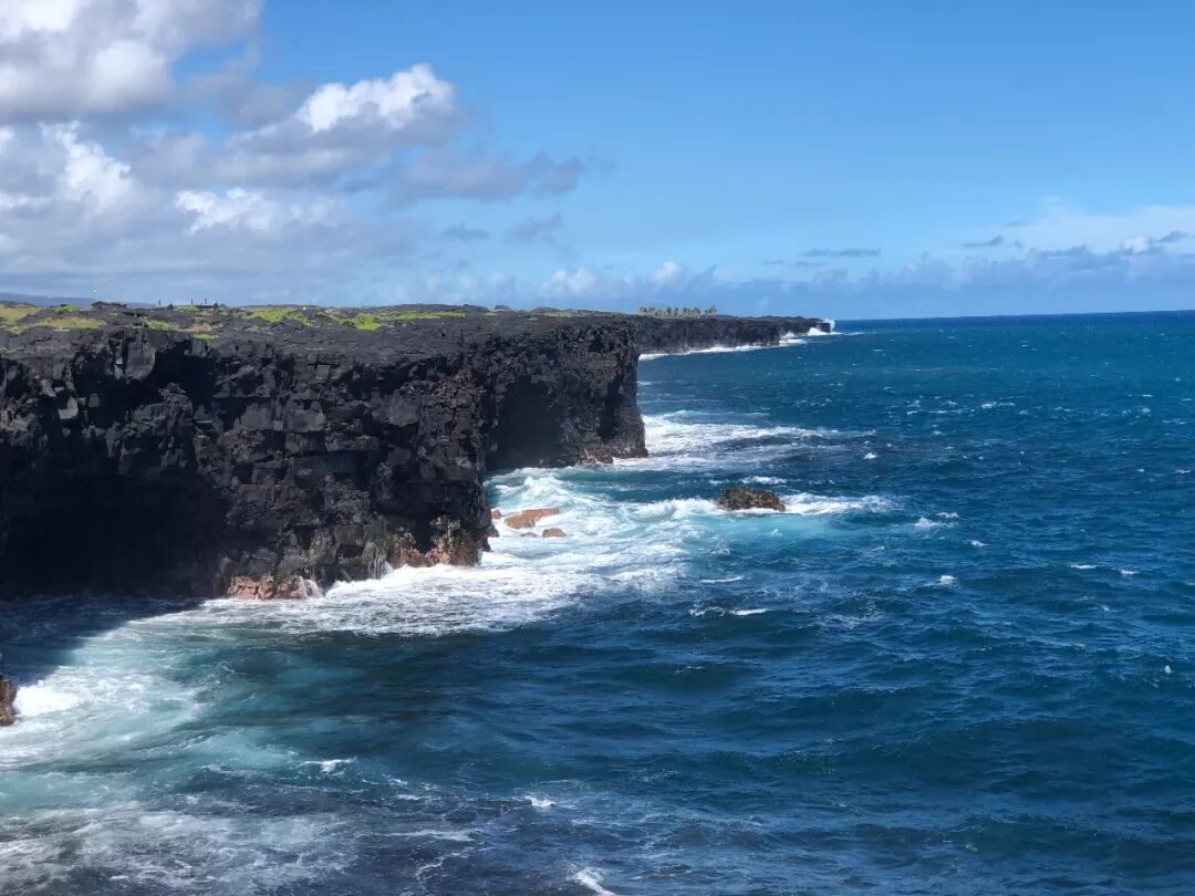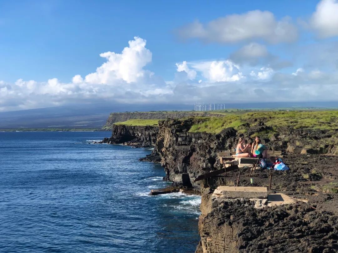 南角是大岛的最南端,这里都是悬崖,有点像澳大利亚的大洋路,不同的是大平洋的海水在这里变得温柔起来,狂野的美国青年从10米高的悬崖一头扎进去,引来众人的一阵欢呼。