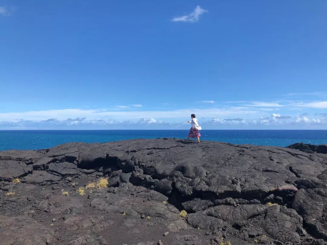 从香港飞到火奴鲁鲁未做停留,马不停蹄地直接转机来大岛。大岛的地形很特殊,中间高四周低,大岛的四周都沿海,日日蓝天白云椰林树影,但只要开车往山上走20分钟,立刻阴雨绵绵湿润起来,再往上就会穿越云海,来到云层以上。
