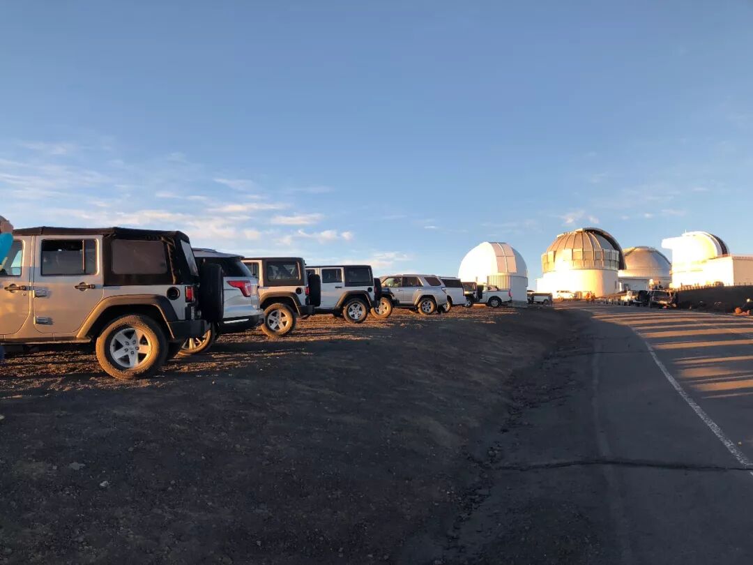 从农夫市集回来后,吃完午饭稍作休息,我们就出发前往本次大岛的重头戏:Stargazing观星之旅。前面说过,这座山是世界上最高的山,虽然只有海拔4000多米,但是它的整个山体是从海底开始起来的,高度超过1万米。因为上山有一定难度(沿途太阳直射双眼以及只能四驱车),所以,我们没有选择自驾,而是报了一个某宝上的团。后来事实证明,只有登顶看落日的20分钟的路需要四驱,如果只是观星的话,任何车辆都可以开到游客中心。