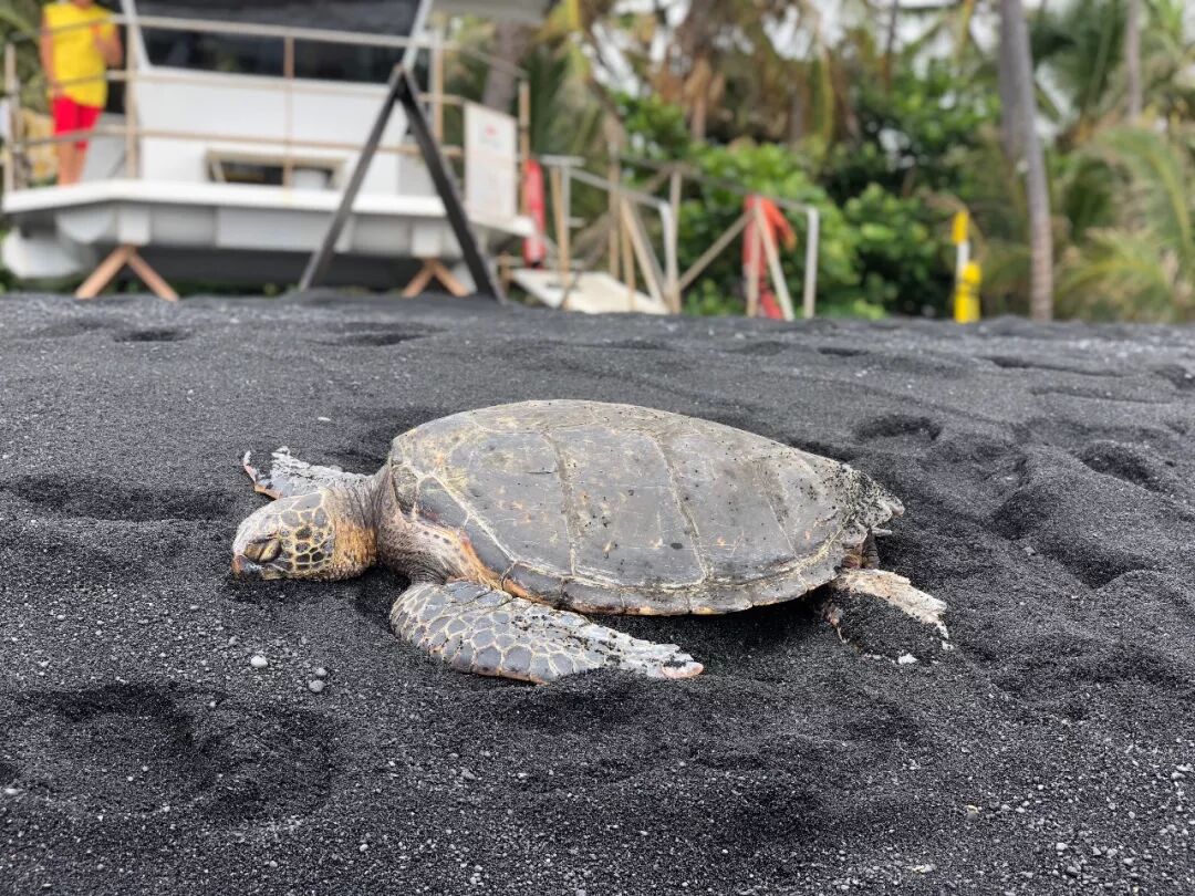 黑沙滩另一个特点是常常有成群结队的海龟出没,海滩上一个外国小姑娘看到了巨型海龟,气喘吁吁地连说三个oh my god,特别戏剧~不过美国很注重动物保护,我们不能离海龟太近,只能远观。