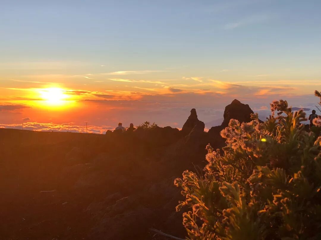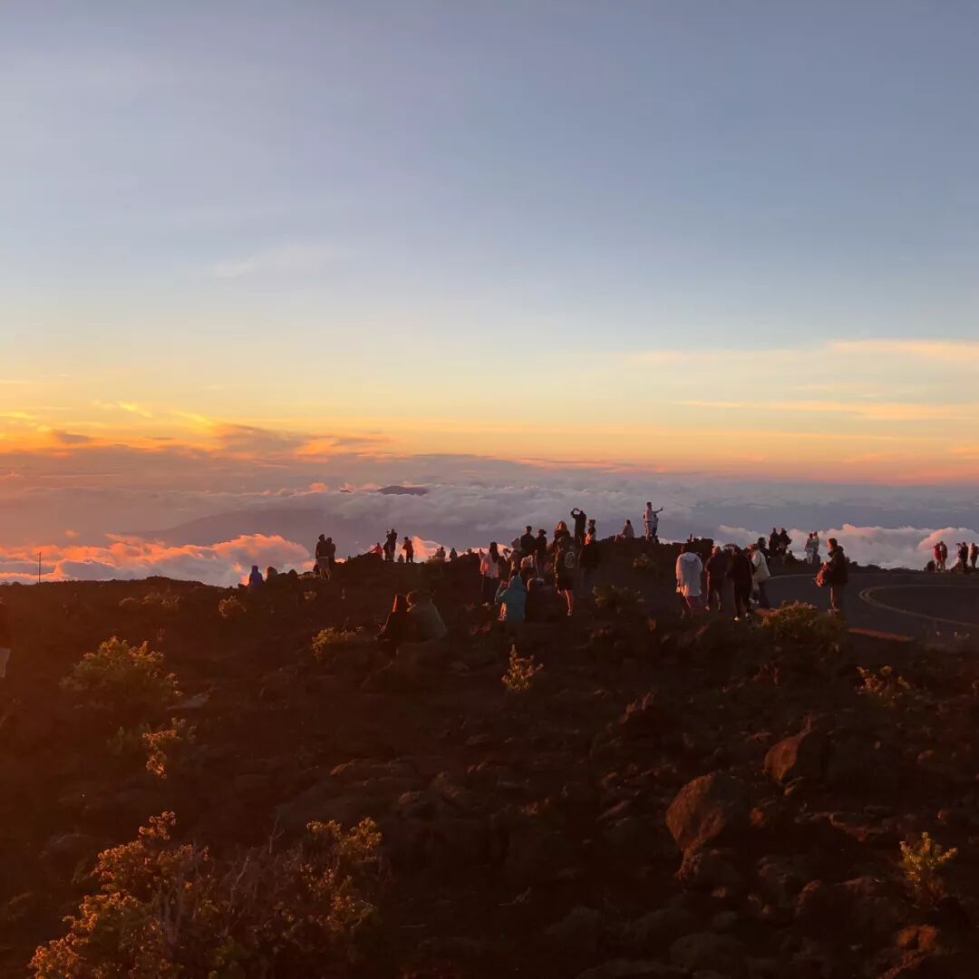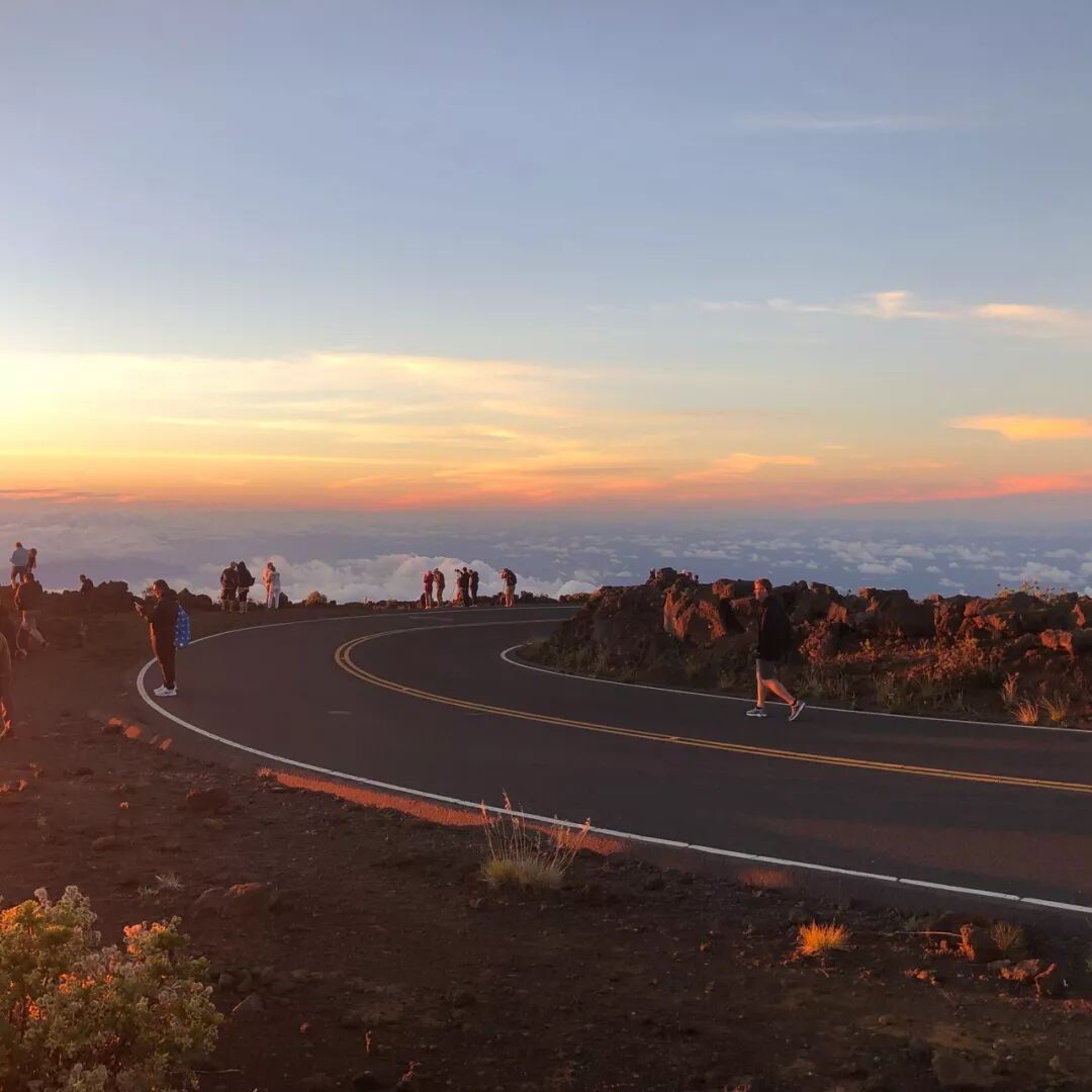 在哈雷阿卡拉游客中心,我们把车停在第一排,观赏了非常美的云海和日落。世界上的美景如此多,为什么我们对于寻常的日出日落那么感兴趣?我想,大概是每一次日出日落都会带给人新生和失去的感觉吧。