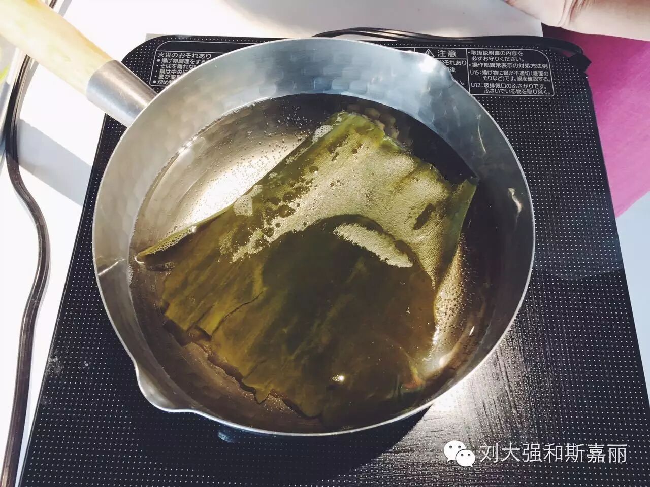 清汤类需要用到日本的一番出汁,出汁相当于高汤,很多日式美味都会用到。出汁其实很简单,先将海带(昆布)热水煮开,然后捞出来,再抓一把木鱼花(鲣鱼)放进去,煮沸后后过滤。用滤布过滤以后的出汁,味道只有一个字形容:鲜!碗中放入香菜和干鱼豆腐之类,用出汁浇熟。一碗清汤即完成。