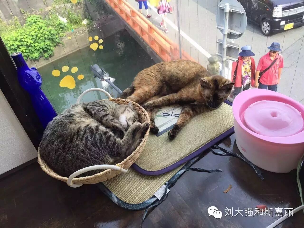 这家一共有10只猫咪,全都大摇大摆的走动、吃喝、睡觉,也懒得和客人互动,一副高冷的模样,店铺里有价格不等的罐头、玩具,如果你愿意多花钱买的话,喵星人就会换一张面孔来找你求抚摸,头牌和其他几只傻猫的卖萌功力立见高下。来自不同国家的猫奴都静静的牌照,小声说话,生怕叨扰了喵星人们的懒觉。