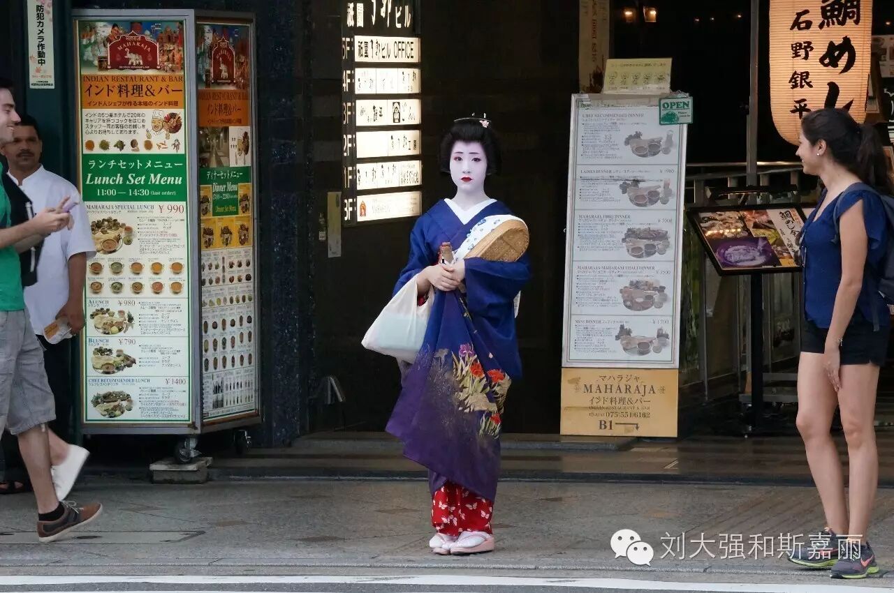 不知道是谁的攻略里提到了要穿着和服游京都,然后这种形式就火起来了,白天的花见小路上随处可见中国游客穿着和服观光,只可惜没有那份优雅,不穿袜子、光脚踩木屐,常常走不了两步就把和服撩到大腿根,大踏步的行走+大声喧哗,完全没有半点美感,和偶尔走过穿着和服的日本贵妇形成鲜明对比。