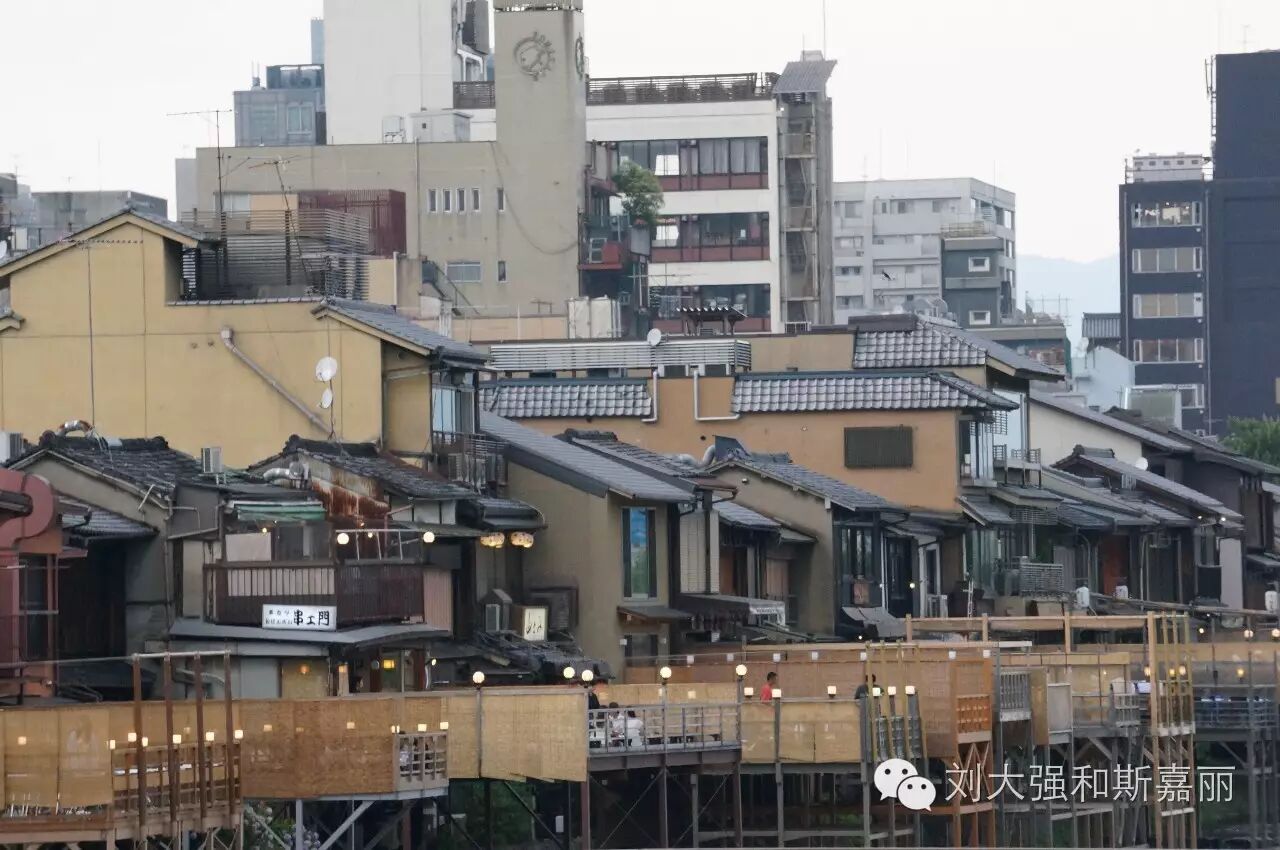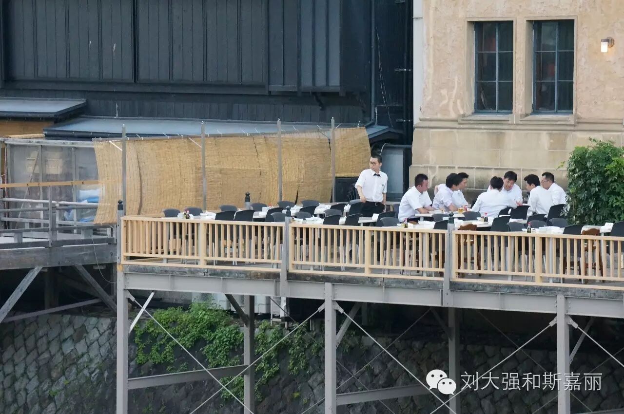 现在鸭川的两侧都有景观不错的餐厅,餐厅把二楼的位置都架高形成一个平台,叫“纳凉床”(仅限夏天),在日剧《半泽直树》里面,公司白领下班聚会的地方就是这里取景。每当夜幕降临,一桌桌的游客脱了鞋坐在上面用餐,河畔微风,月光下最适合觥筹交错。