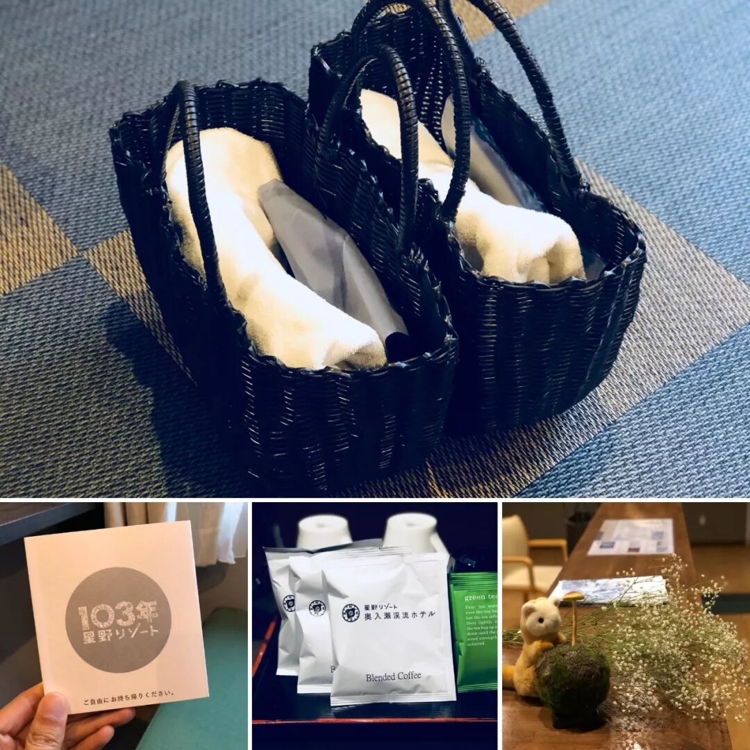 日本的酒店会按人头加钱,也会准备相应的床铺和洗浴备品,再次强调,预定时一定不能隐瞒人数。客房还准备了和服浴衣,还有一个放大镜用来观察苔藓。这三家星野比起来,这家的浴衣最好看。浴衣是可以穿着在酒店的任何地方出入的,包括餐厅,所以甚是方便。