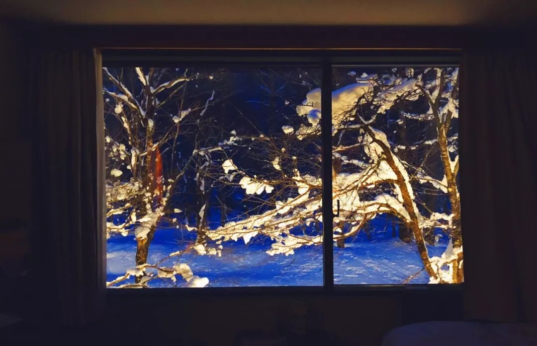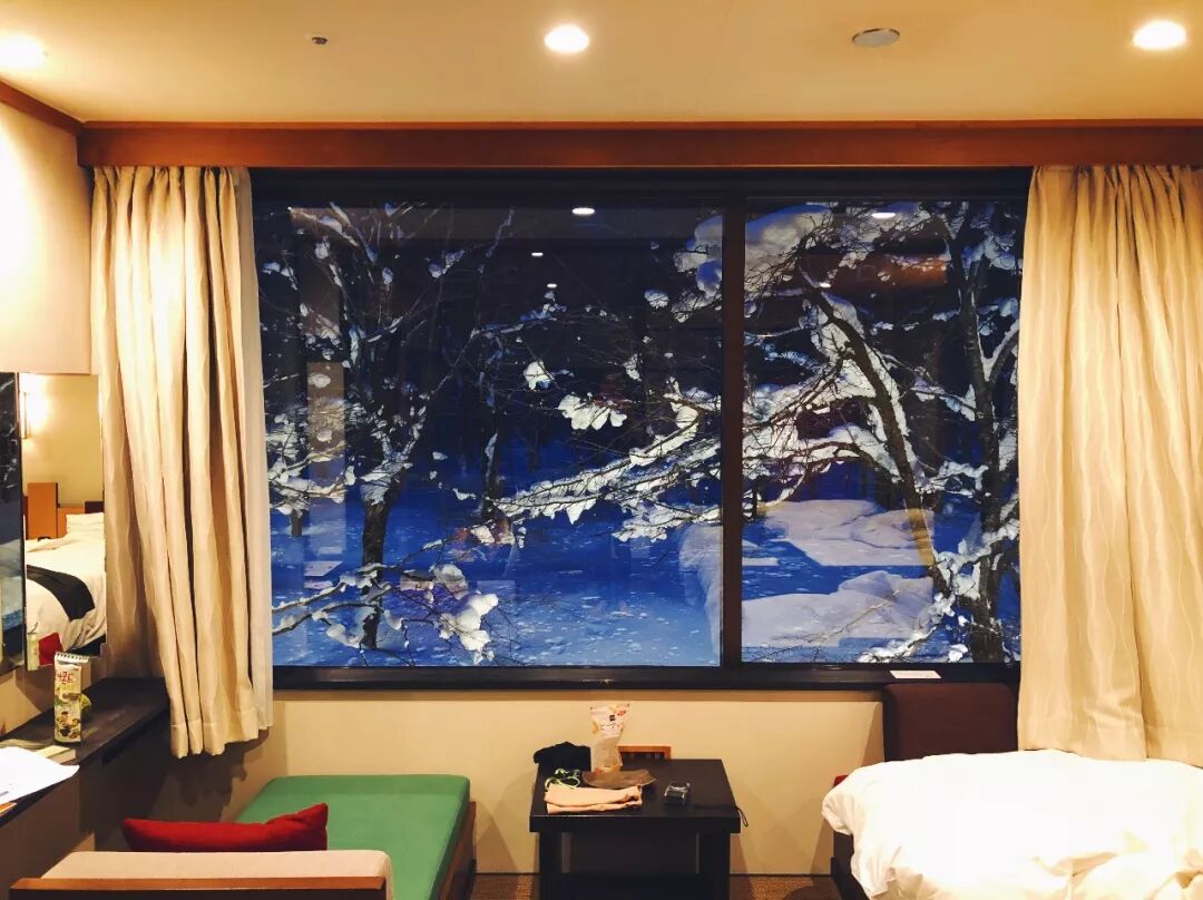 参加完两个项目才入住客房,暴走夫妇也是太拼了,客房设施陡很齐全,除了电视很小以外,窗外的景色堪称完美,两颗大树挂满了雪块,白天傍晚夜间呈现出不同的颜色,像是一副画一样,静静滴躺在椅子上看雪,就能愉快滴笑出来。