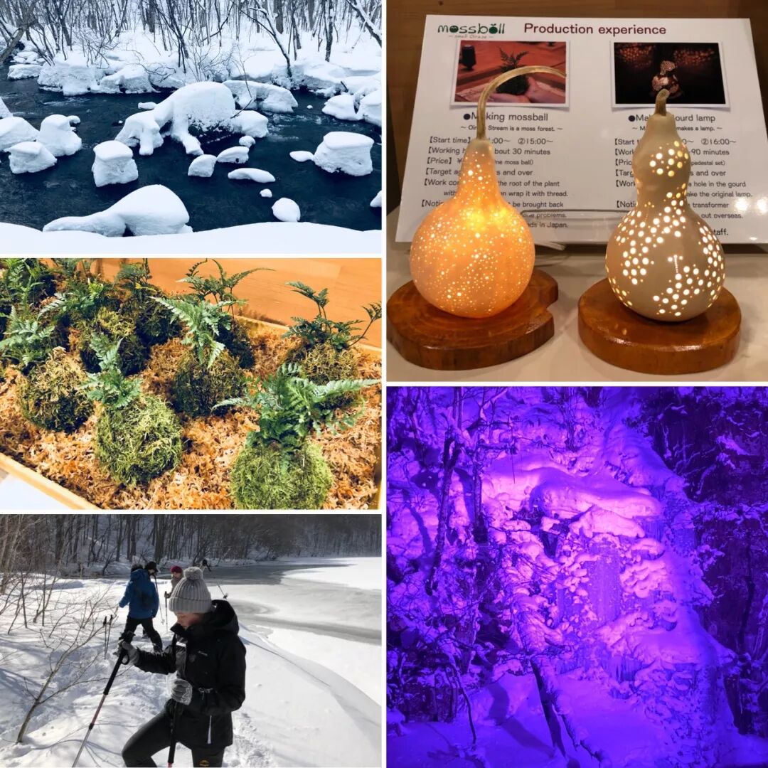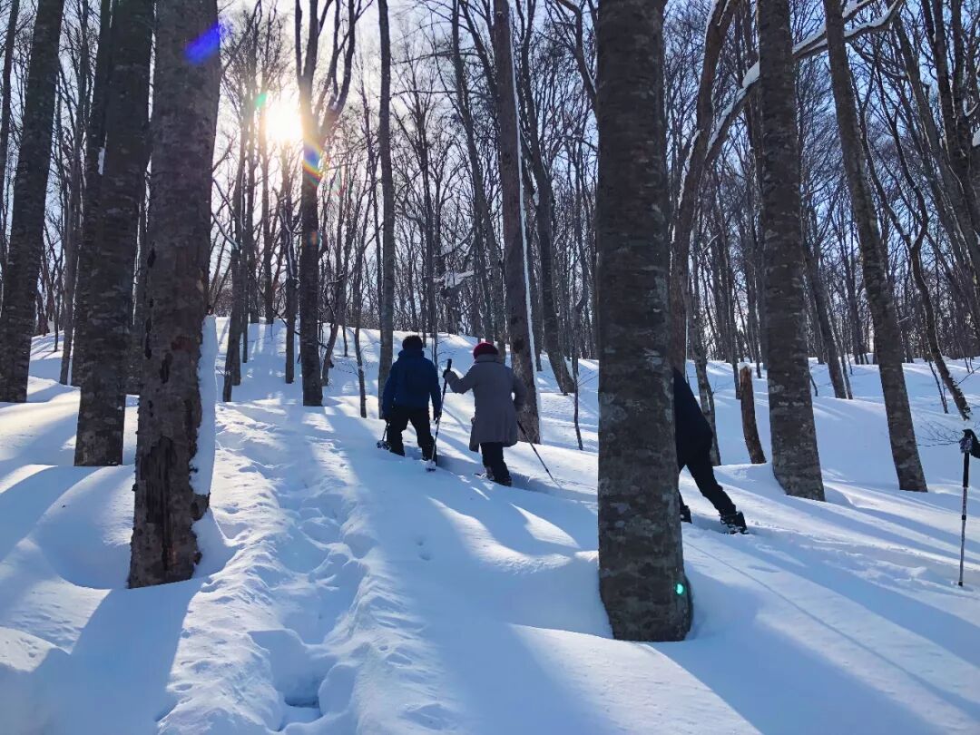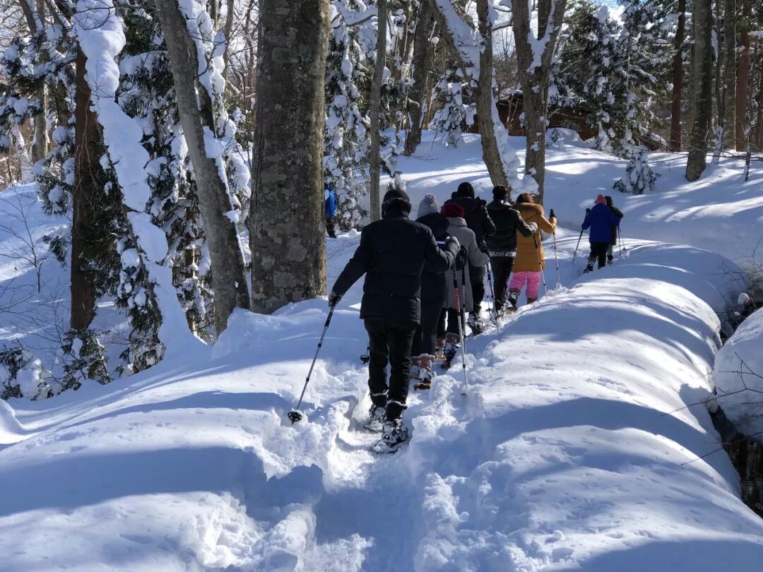 距离酒店30分钟车程的鸟沼冬季漂亮,道路两旁、屋顶都有一米多厚厚的积雪,松林、树挂、像童话世界里一样,简直是雪乡的升级版,穿上酒店提供的专用雪地漫步鞋,拿上手杖,就可以跟着向导开始童话般的雪国漫步。