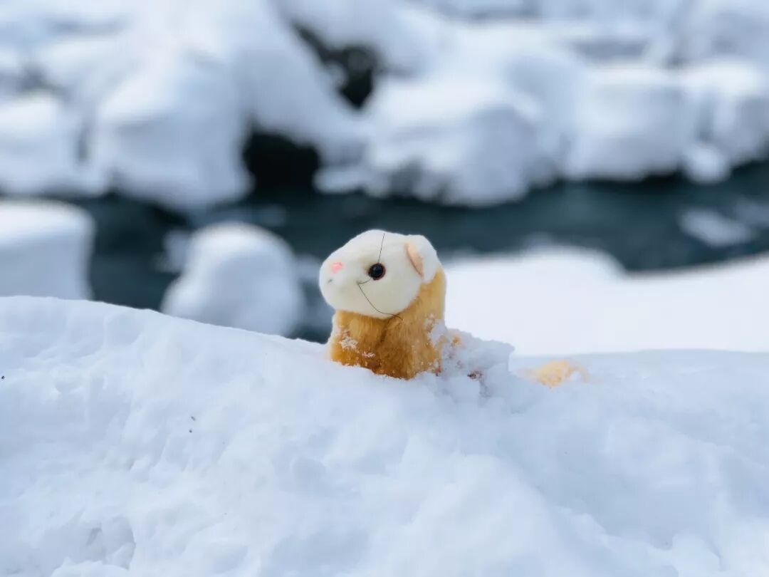 冰瀑的规模不算太大,这个行程的亮点在于可以看到雪中溪流,虽然奥入濑的溪流夏天最适合解暑徒步,但是冬天雪中溪流更有一番风味,拍照的时候,工作人员从兜里拿出一个松鼠玩偶,真是有爱~