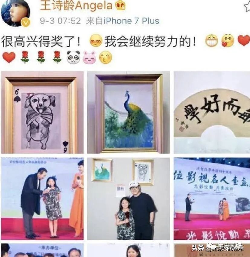 王诗龄在画画方面非常有天赋,她的画作拿了不少奖,有一幅甚至卖出了12万的高价。