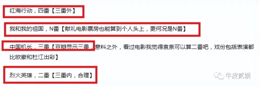 但仔细计算,除了单元片《我和我的祖国》,尽管在《长津湖水门桥》中表现出色,但其他都是三番以外,也改变不了他低位的事实。