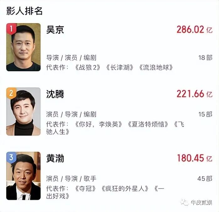 自吴京总票房突破了100亿之后,“百亿票房”、“百亿影帝”也应运而生,后来沈腾、黄渤等人的票房也达到了百亿。