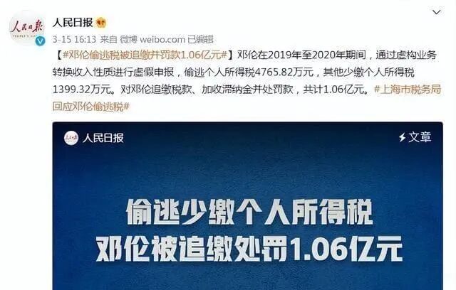 2022年3月,人民日报发布了一则邓伦偷税逃税并被罚款1.06亿的消息,一下子所有人都震惊了,毕竟邓伦平日的阳光帅气的形象还挺深入人心。