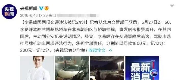 但这已经不是李易峰第一次被点名了,早在2016年,李易峰就因为交通违规而被央视点名。