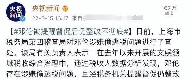谁知道被批评后邓伦以及他的工作室还没有补缴税款,再次被官方点名批评,这次属于屡教不改,情节就严重了。