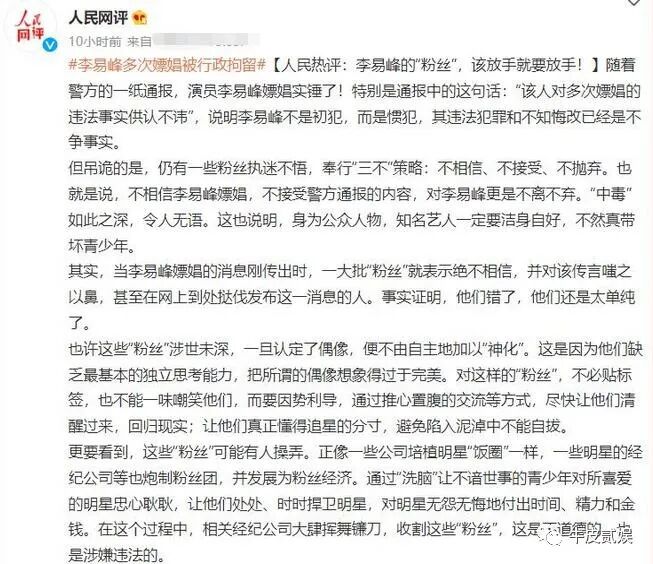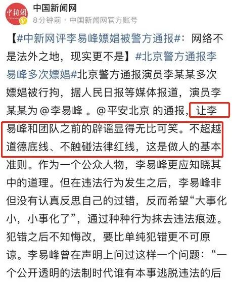 中国新闻网也指出,李易峰这种所谓的“辟谣”无比可笑,明知错了,不仅不思悔改,反而一味的掩饰,逃避,可悲又可恨。
