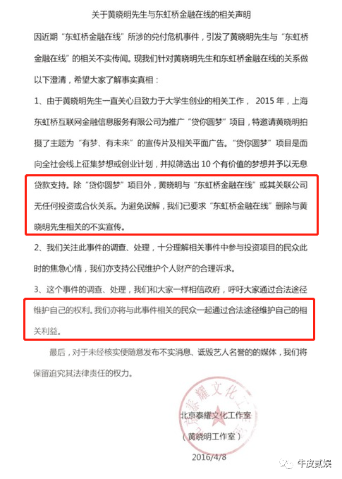 虽然黄晓明马上发文回应自己和这家公司只是代言关系并承诺和受害者一起追回钱财,但这个事件却是让黄晓明的口碑不断下滑。