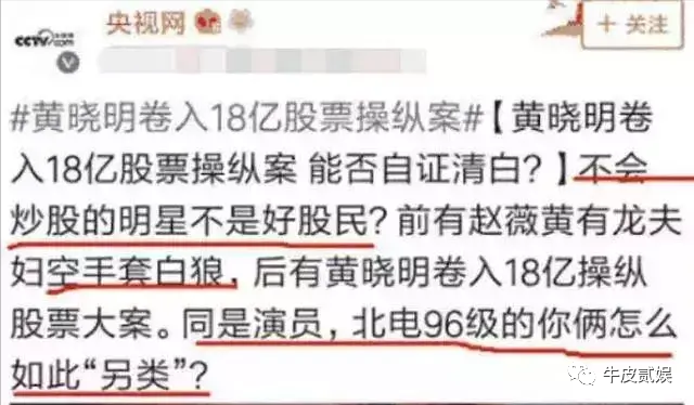 之后“18亿操控案”更是给了黄晓明狠狠一击,当时一位名叫高勇的投资合伙人涉嫌操纵股票,随后媒体们发现黄晓明的名字也出现在高勇操作的账户当中,一时间无数网友纷纷出声指责黄晓明。