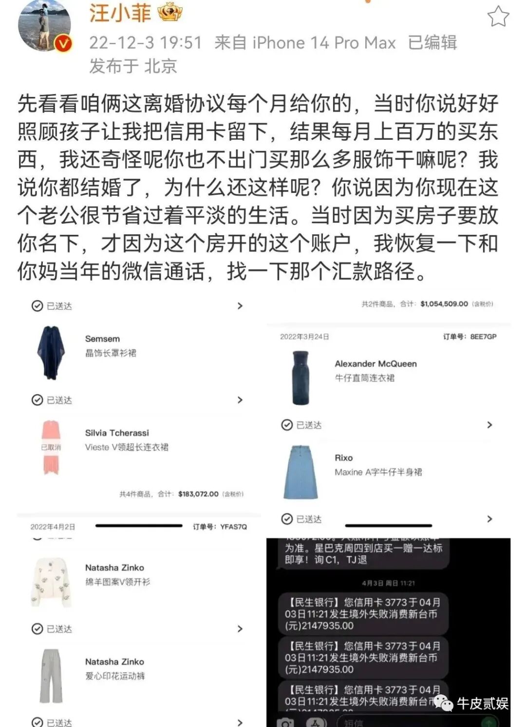 随后,汪总放出来的资料,也狠狠地打脸了大曲线,并让她没想到的是,汪总还晒出了大曲线近段时间用汪总的信用卡进行的疯狂消费。