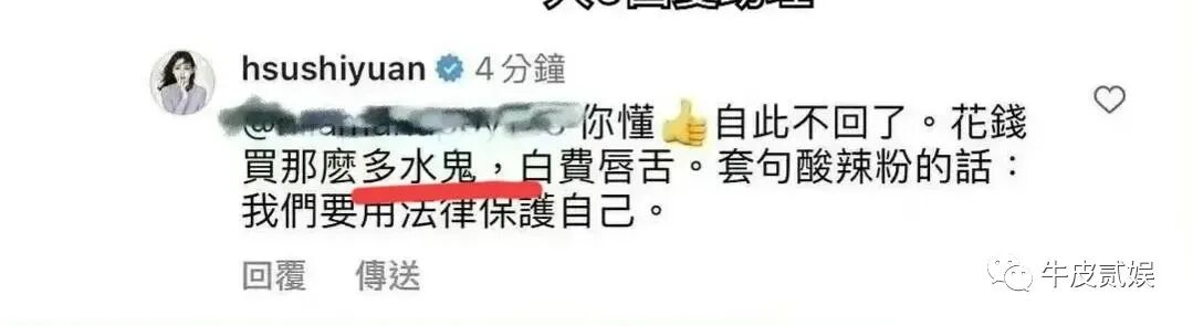 其次,她嘲笑内地的粉丝们是“水鬼”,恰好证明汪总的爆料戳中了她的心窝子,而正是这样的一个原因,使得她开始有点泼妇骂街的味道了。