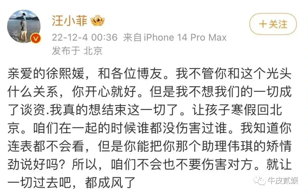 亲爱的徐熙媛,和各位博友,我不管你和这个光头什么关系,你开心就好。但是我不想我们的一切成了谈资……就让一切过去吧,都成风了。