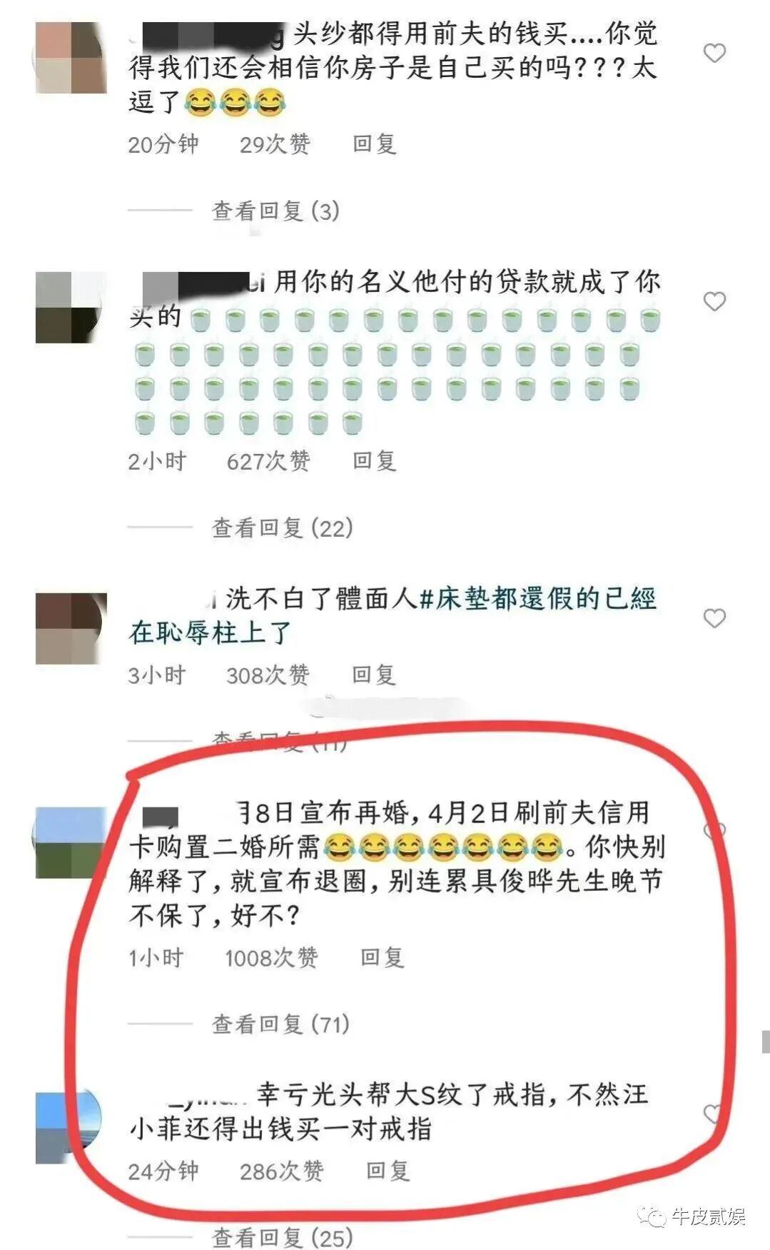 第三,这可能是大曲线下的一个坑,因为首付款是汪总付的,钱肯定也是他转的,但法律有规定,晒出自己的大额转账记录是违法的,大曲线是在赌他敢晒不。