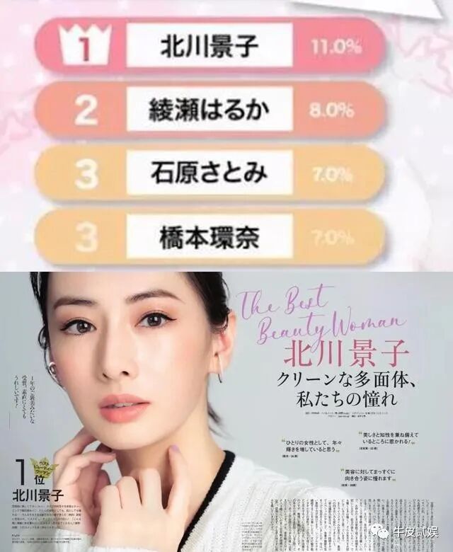 但即便如此,在日本女生的心中,她依旧没有在去年入选上“日本女性最想拥有的颜”的前十名。