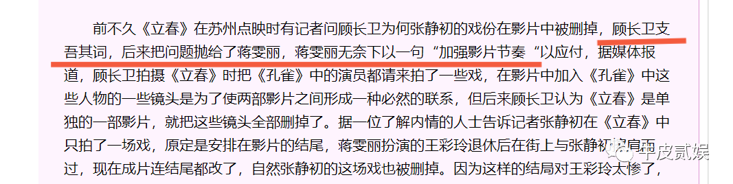 后来顾长卫的《立春》又邀请张静初出演,蒋雯丽直接坐不住了,亲自上场出演女一号。